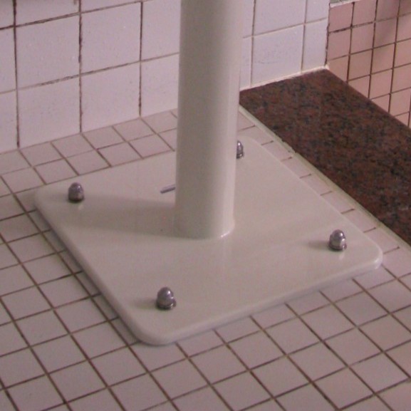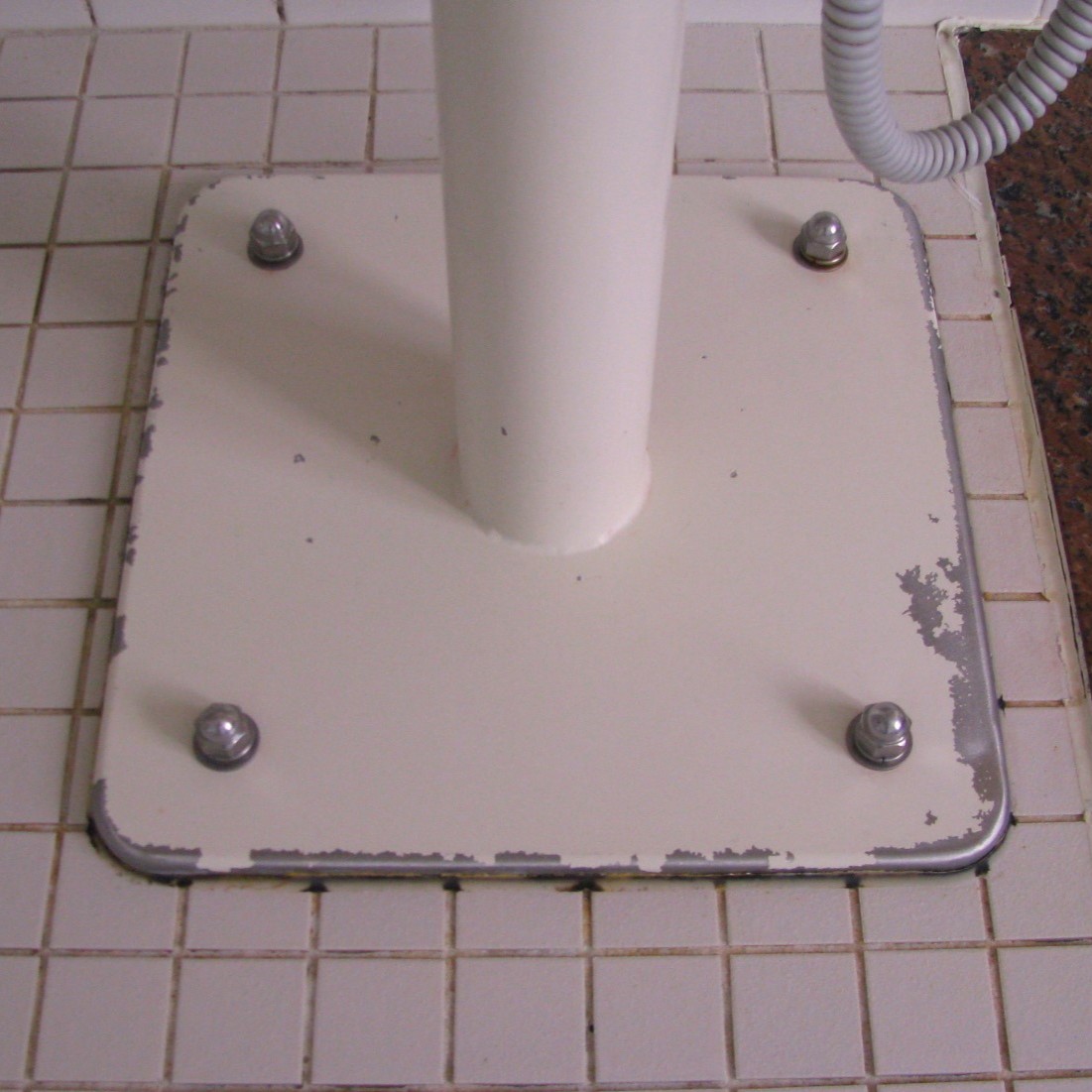 支柱を外すと、長年の使用で床面には頑固な汚れがこびりついていました。