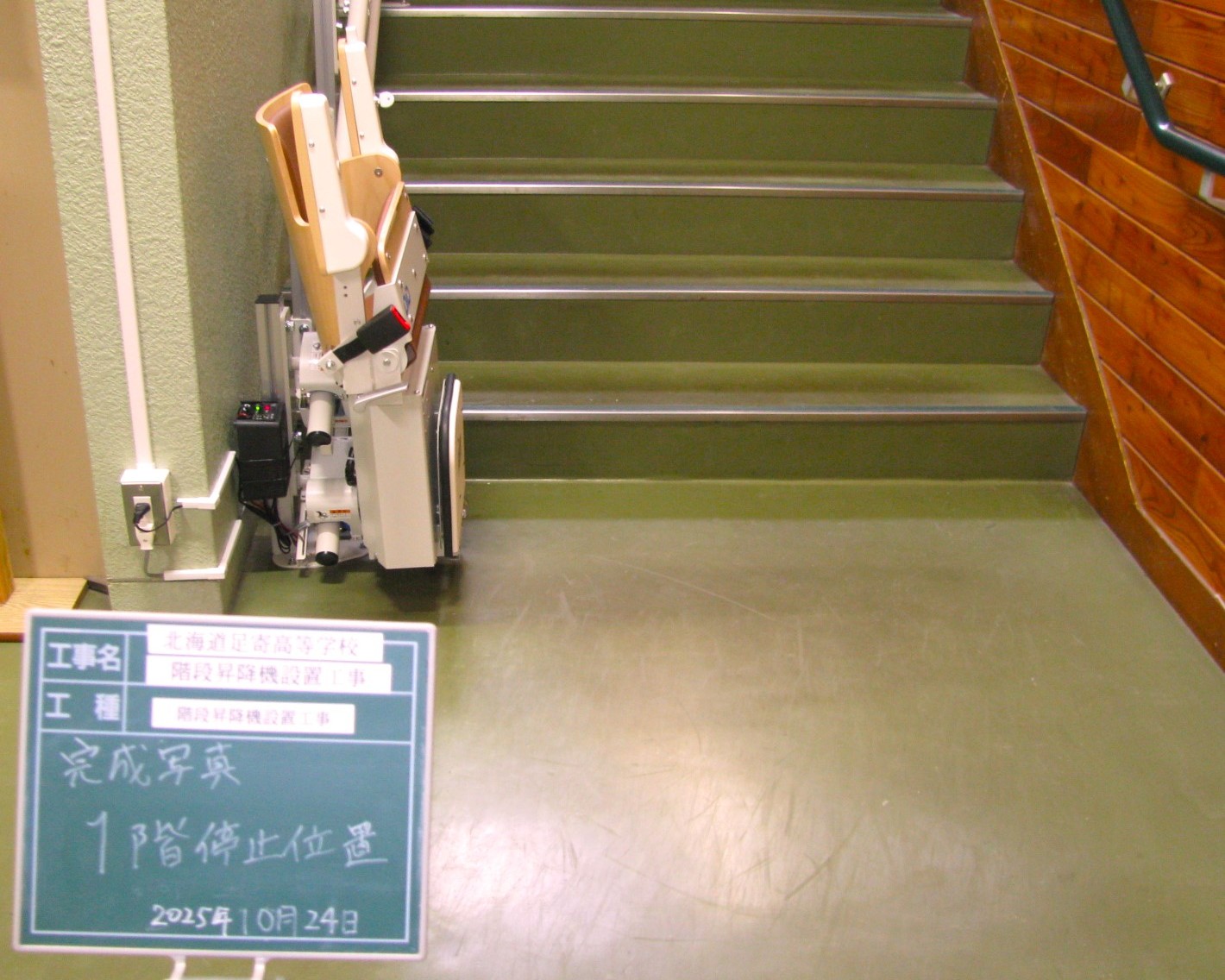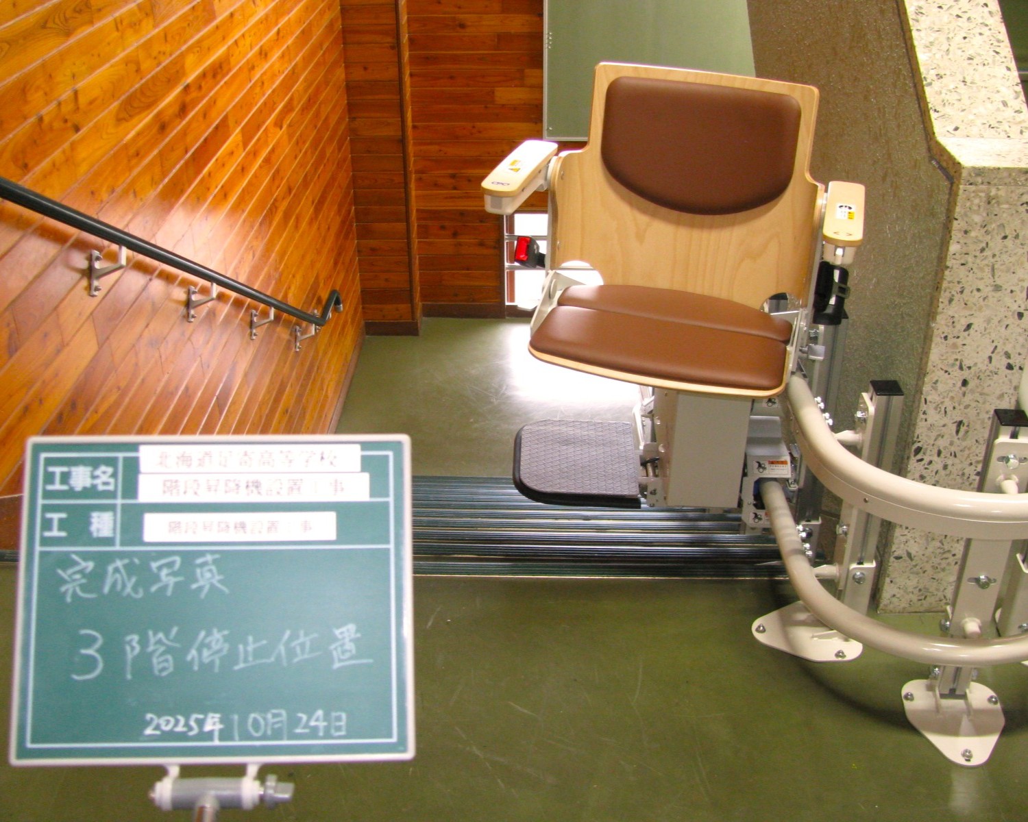 その後、幕別清陵高校様からいす式階段昇降機を紹介されたことをきっかけに、足寄高校の事務長様が予算を申請しました。