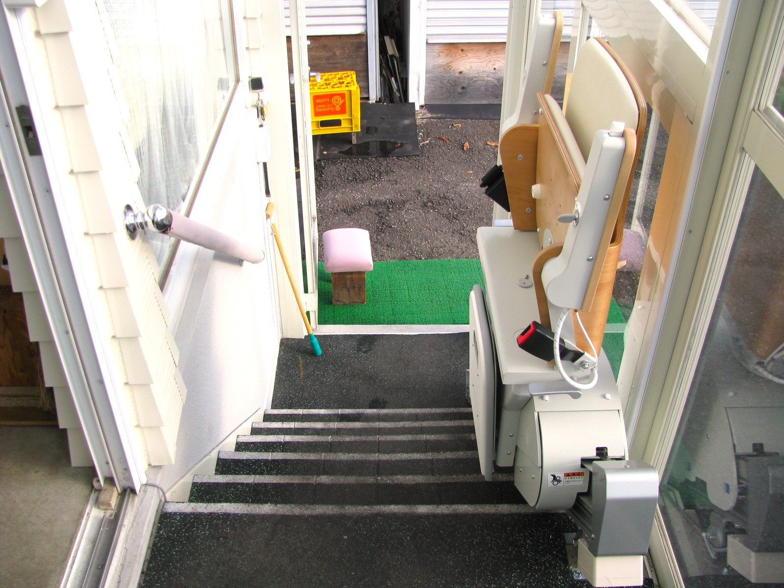 T様邸の外階段に設置した機種は、直線階段用いす式階段昇降機「エスコートスリム」です。