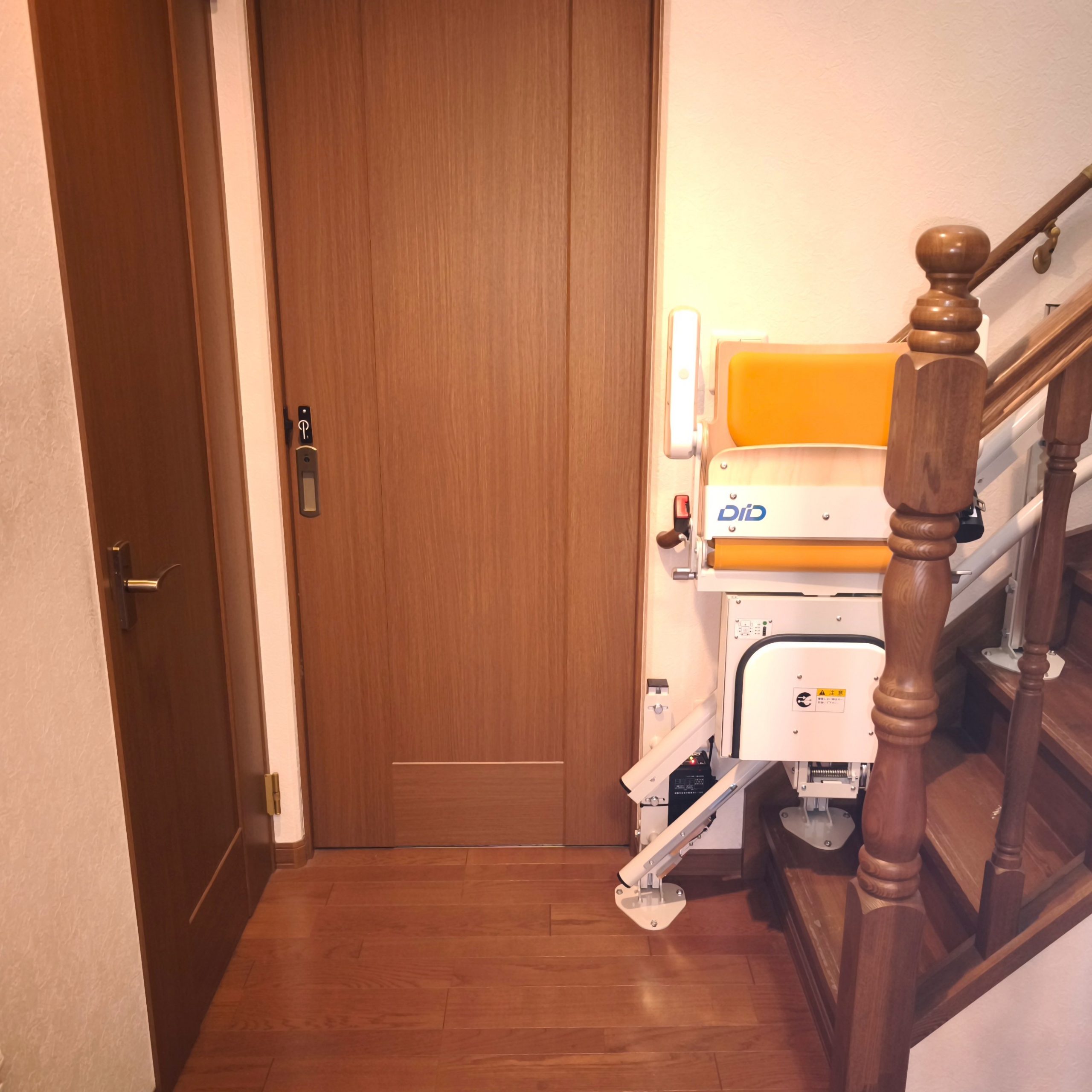 そのためご主人は、奥様が転倒・転落への不安を感じることなく安心して暮らせるよう、建築業者様を通じて「いす式階段昇降機」の設置を依頼されました。