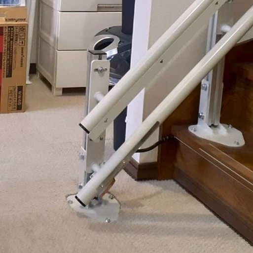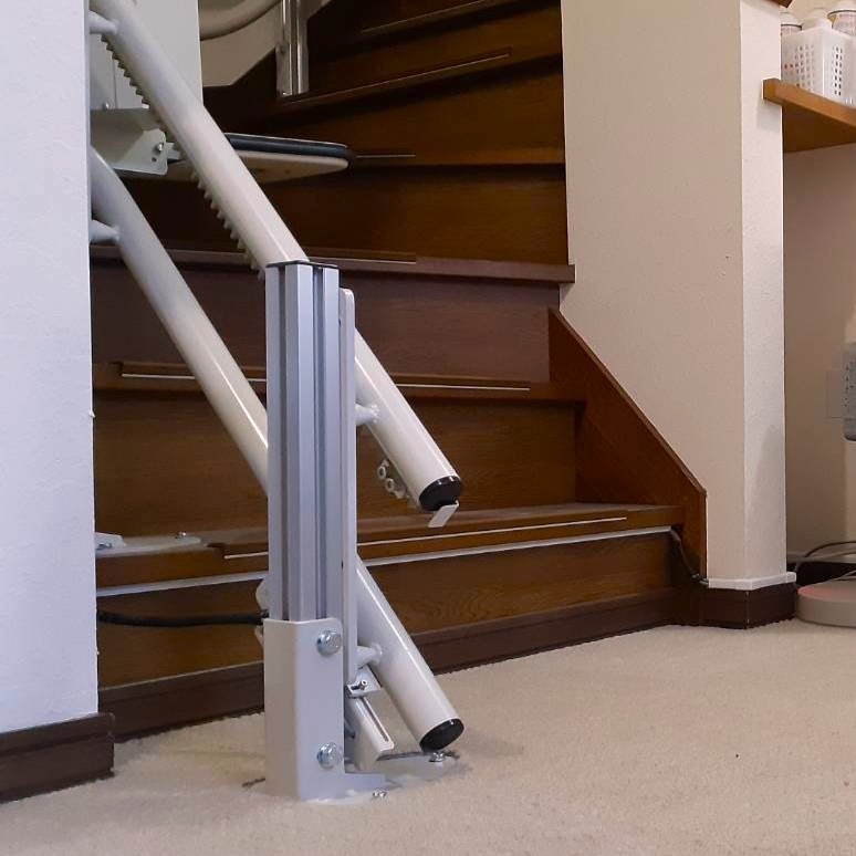 また、上階は階段の先がすぐ廊下につながる間取りのため、レールが飛び出さないよう回転機能を活用し、安全に乗り降りできるよう調整しました。