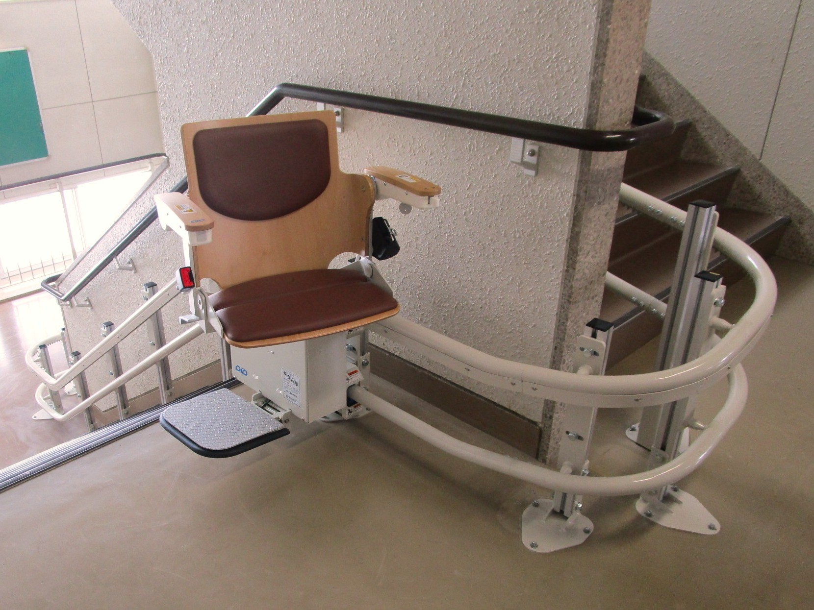 楽ちん号KF-Wは曲線階段に対応した機種で、学校や公共施設だけでなく、一般のご家庭にも多く採用されています。