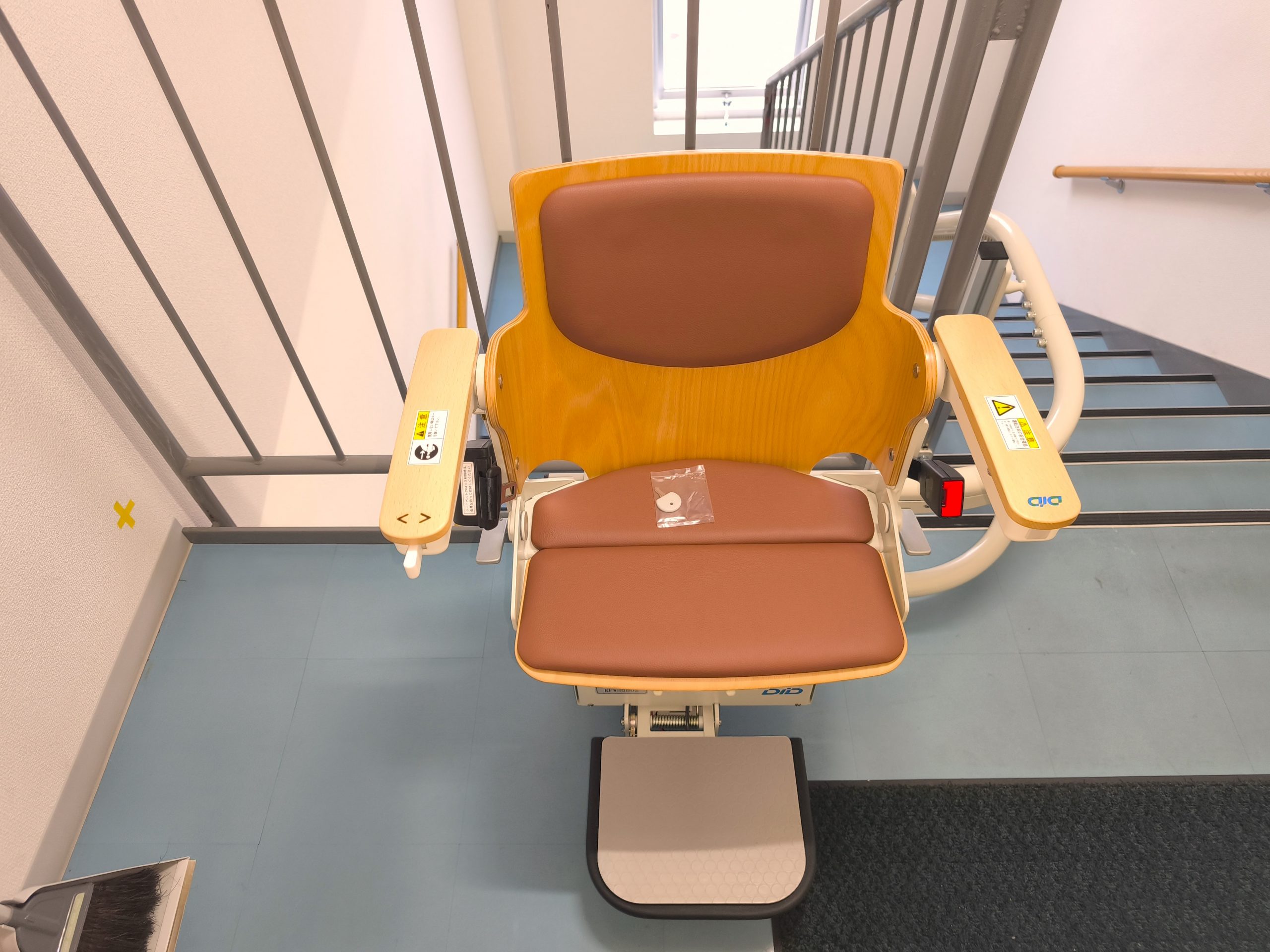 そこで、停止する位置を平らな踊り場に設定し、いすを回転せずに安全に乗降できるようにしました。