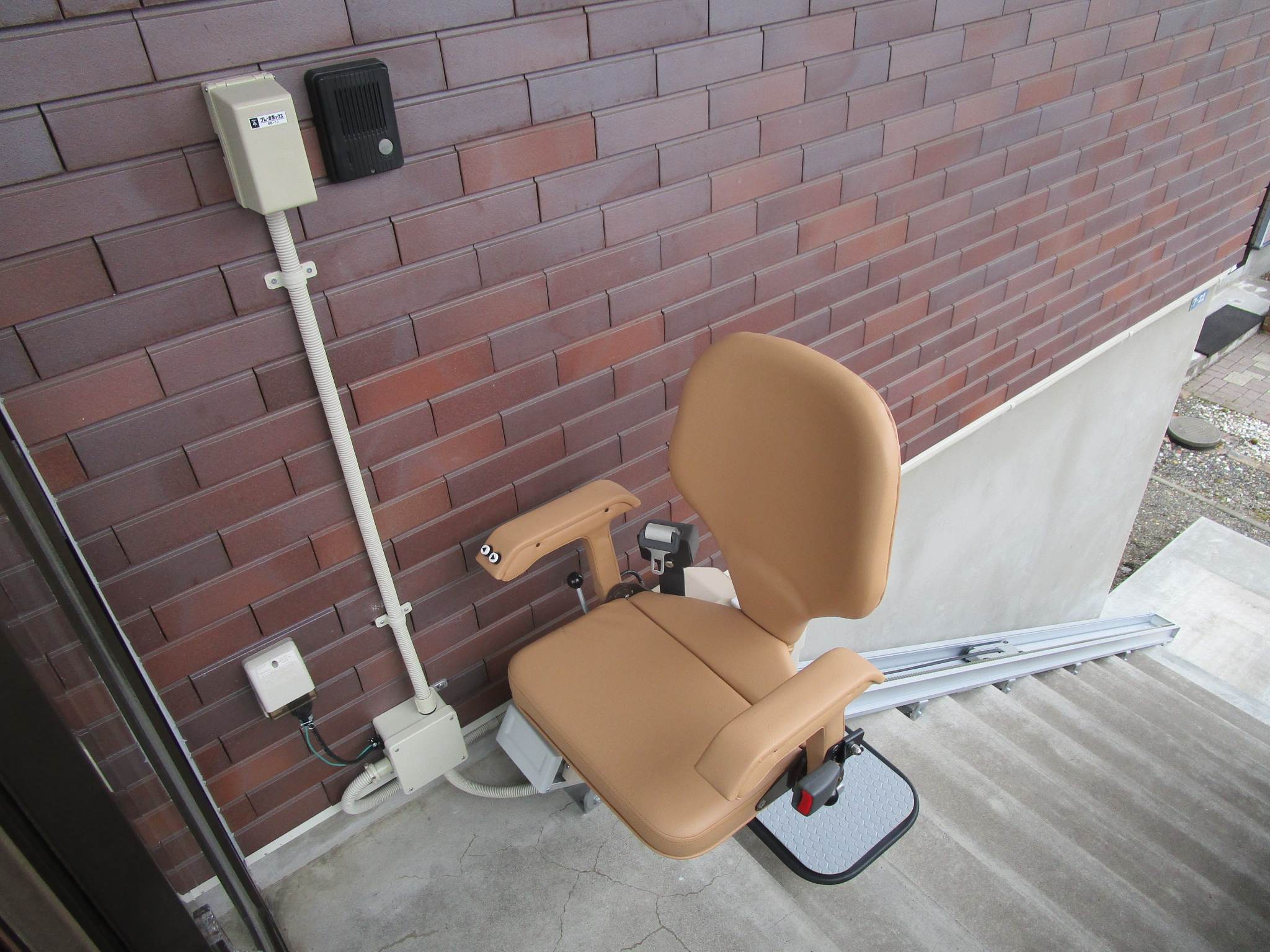 そこで、ご主人や介助者の安全を考慮して、外階段に階段昇降機の設置を決断されます。