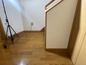 玄関からすぐの場所に階段があるため、そのまま設置すると廊下を圧迫し通行に支障をきたすためです。