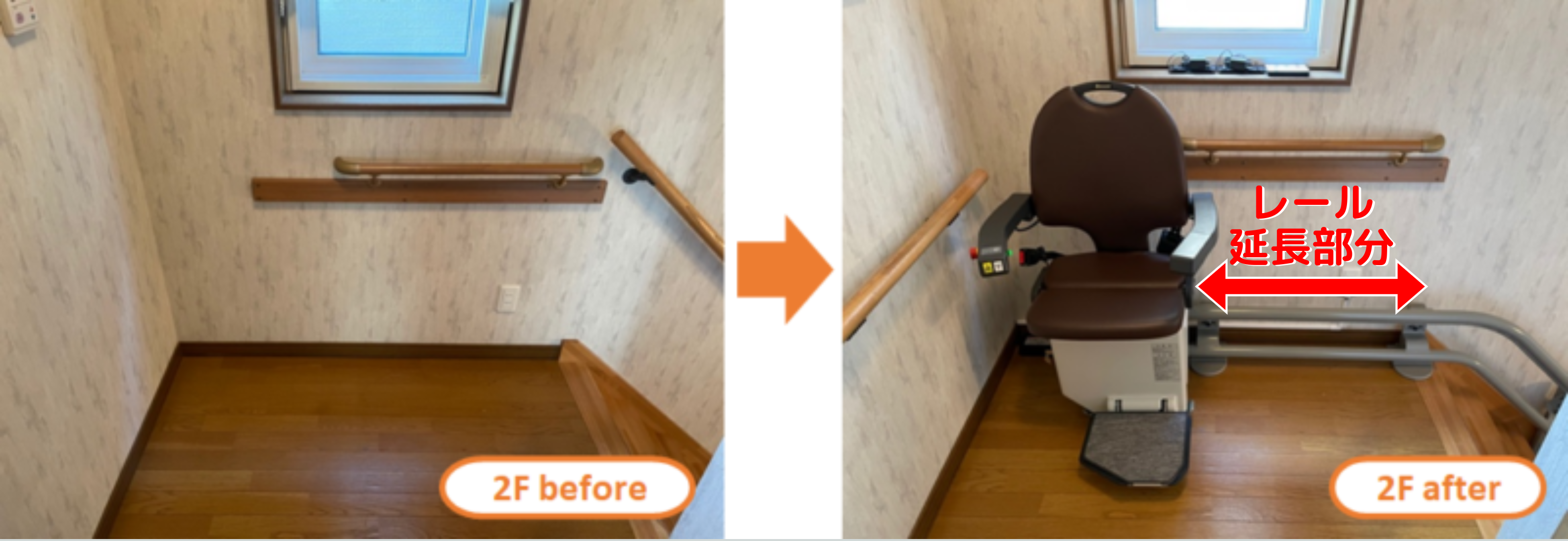 レールを延長して、安全に乗り降りできる様に設置しました。