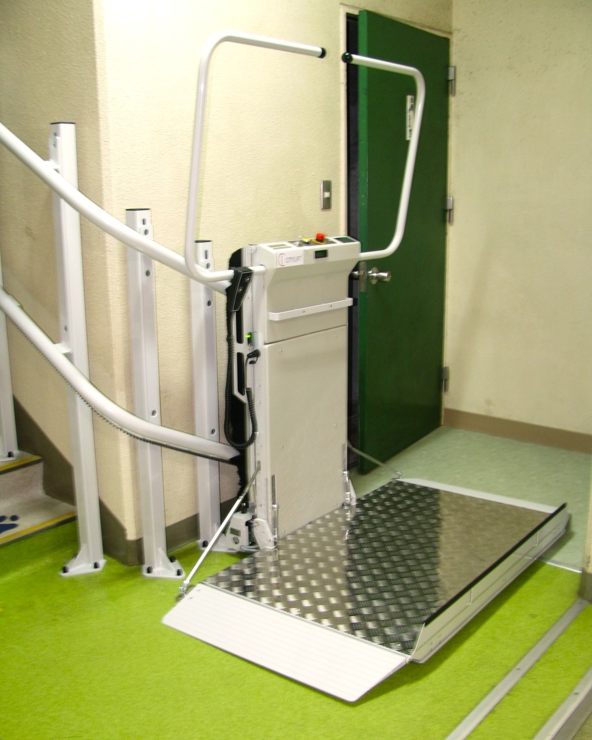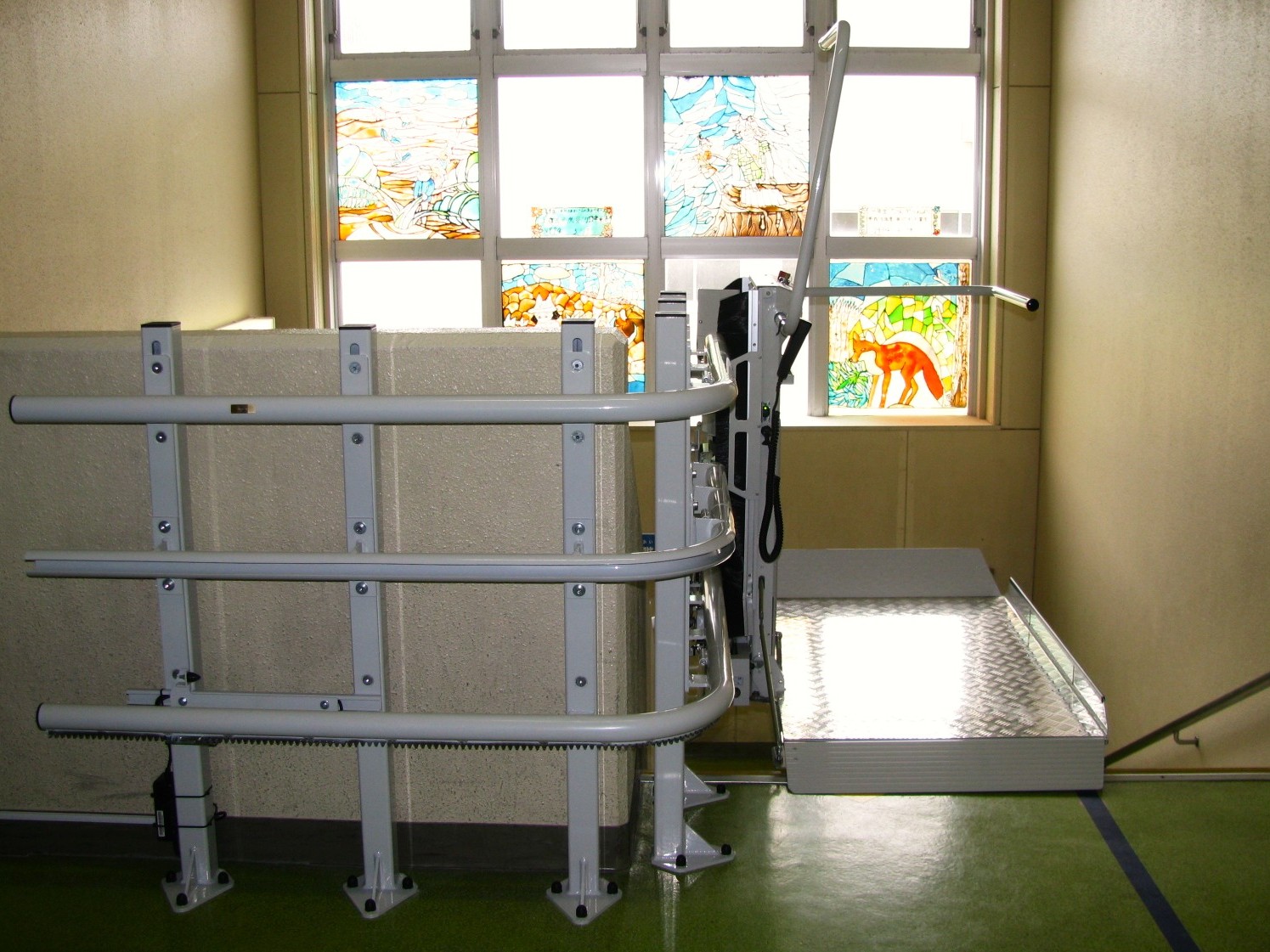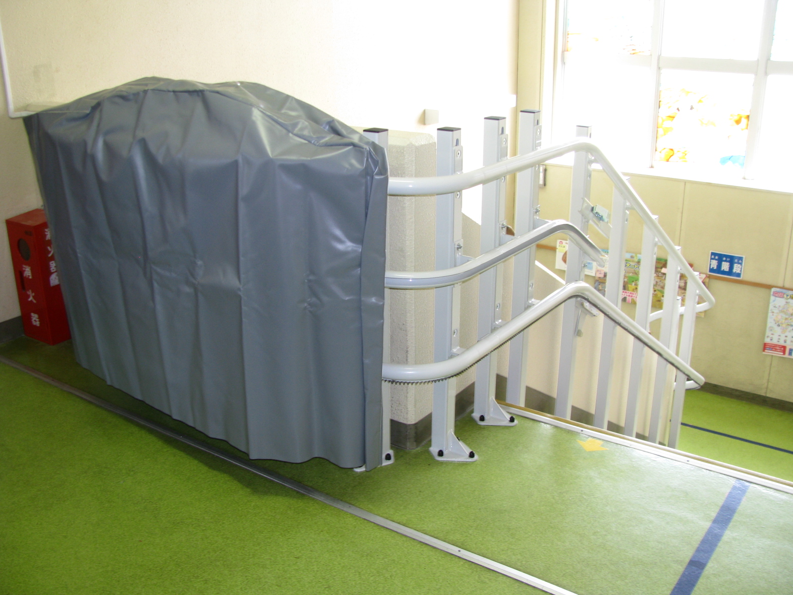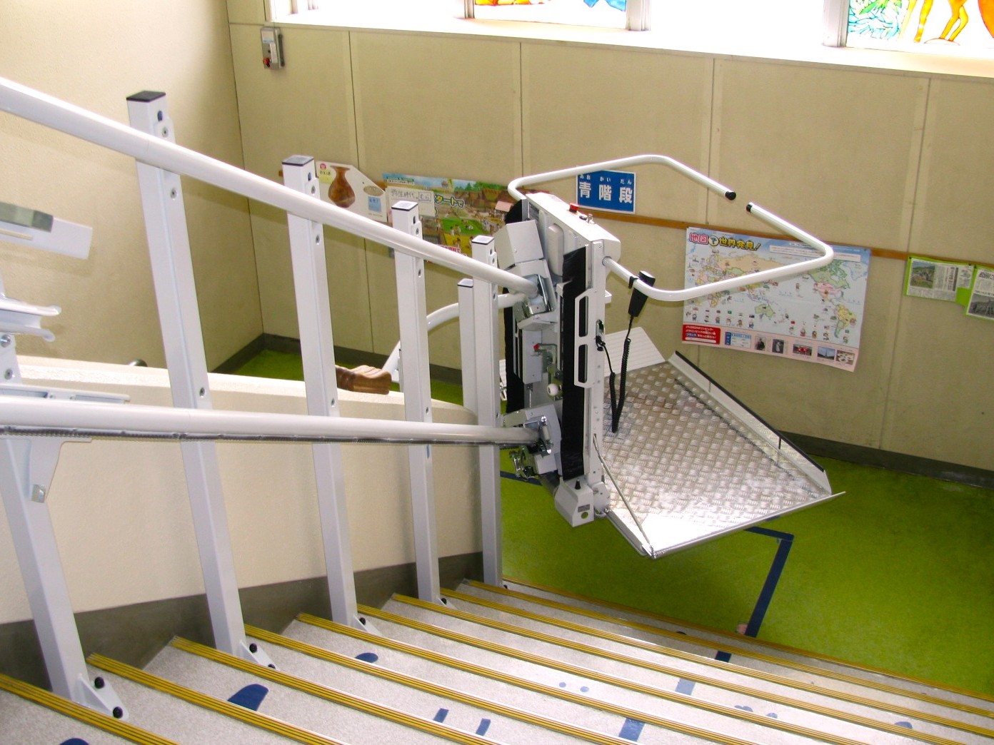 そこで同校では学校施設環境改善交付金を活用し、車いす用階段昇降機の導入を決定しました。