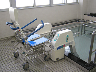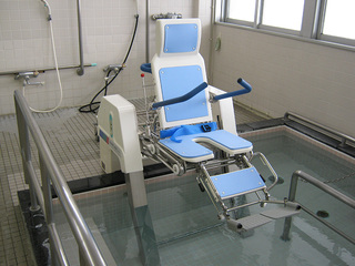 今回の入浴リフトは専用の車椅子を使って座ったままで入浴できるので、患者さんも、介助されるスタッフの方もとても楽に入浴して頂くことが可能になりました。