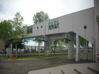 こちらは駅から校舎へ向かう渡り廊下に車椅子用階段昇降機が設置されています。