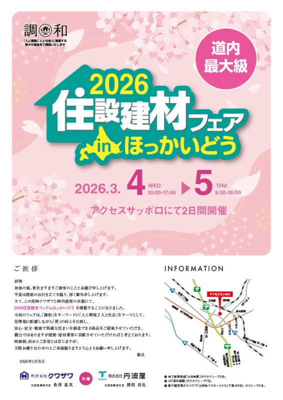 「2026 住設建材フェア in ほっかいどう」へいす式階段昇降機を出展いたします。
